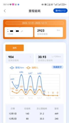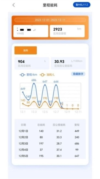 我们对车辆的能耗数据也开展了统计分析工作,用户能够在能耗分析中心查阅到相关的能耗分析数据信息。