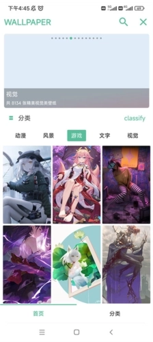 4、壁纸功能:首页点击壁纸,各种精美壁纸任你挑选。