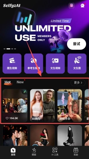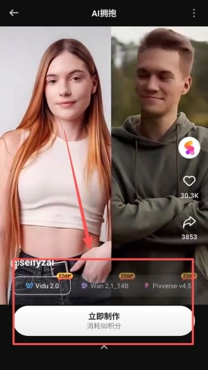 3、制作拥抱主题视频时,需准备两人的照片素材,接着在互动模板库中挑选合适的拥抱姿势模板,AI系统会自动智能合成呈现自然互动效果的视频,并且支持对背景融合度进行调整。