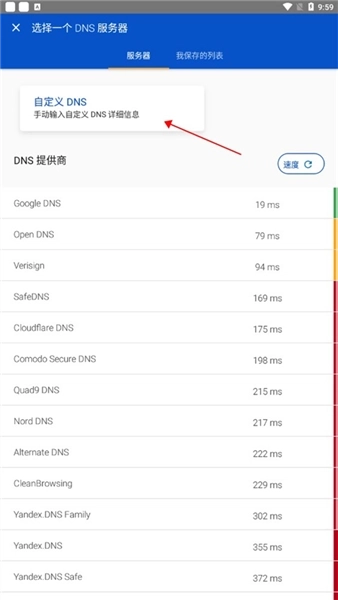2、在此处你能够自定义DNS,还可以手动输入自定义DNS的详细信息;