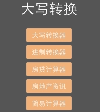 3、目前软件内配备了四款实用工具,具体包含大写转换器、进制转换器、房贷计算器以及普通计算器,有相关需求的用户可随时体验使用。