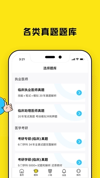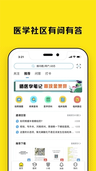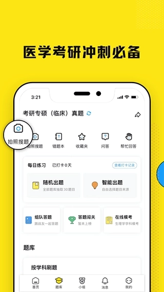 4.医学题库覆盖临床执业医师考试、医学考研、西综、护考、药师、主治考试等各类医学考试场景,提供全面的刷题资源;通过多种刷题模式助力用户构建系统化的刷题体系,且题库内的题目可直接在社区发起提问。