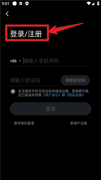 2、回到登录页面后,再次输入手机号与验证码。若该手机号尚未注册,系统将自动完成绑定与注册流程,随后点击“登录”按钮,就能进入主界面。