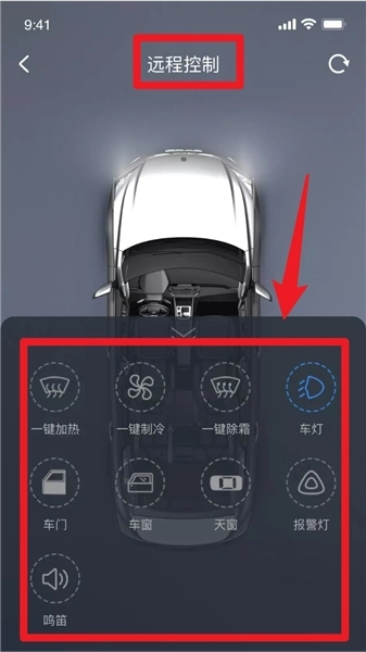 4、进入“远程控制”模块,即可远程操控空调制热、车灯闪烁、车辆鸣笛、开启车窗等功能,无论是提前为用车做准备,还是远程应对日常用车需求,都十分适用。