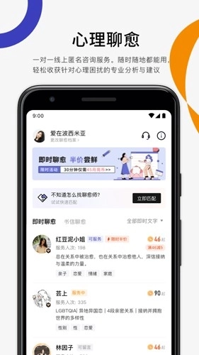 3、全新升级的聊聊频道页面,为你严选优质服务者,更有泛心理主题语音房等你来探索解锁~