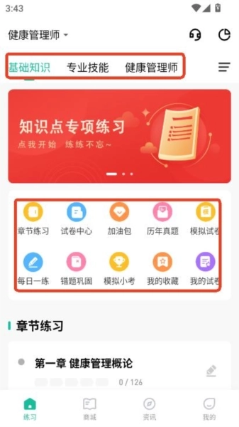 1、【健康管理师题库】该题库全面涵盖近10年健康管理师考试的每日一练、考点章节练习及高频考点内容,还包含上千万道题库的精准解析。