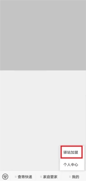 2、进入妈妈驿站页面后,点击右下角的“我的”,然后选择驿站加盟项目。