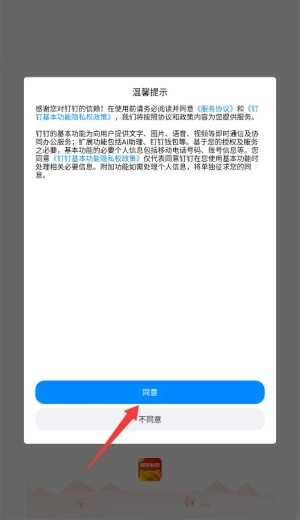 1、首次打开应用时,需要阅读并同意用户服务协议与隐私条款,点击确认按钮后即可进入主界面。