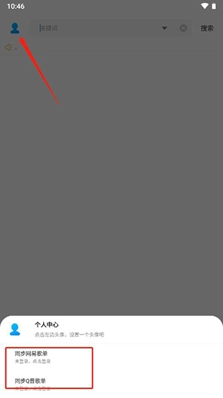 1、点击左上角进入个人中心,在页面下方就能找到同步网易歌单和Q音歌单的选项。