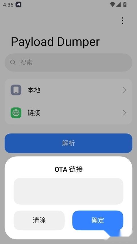 3、在指定的输入区域填写OTA链接,确认链接准确无误后点击“确定”按钮,即可启动后续的解包流程。