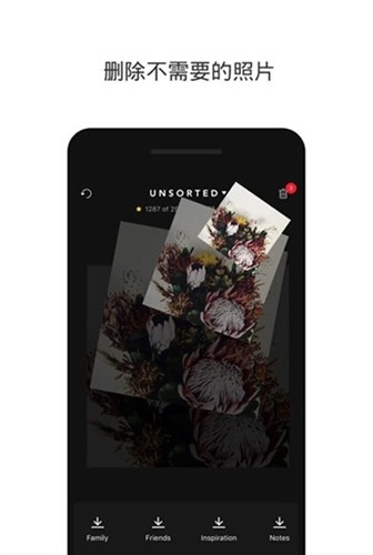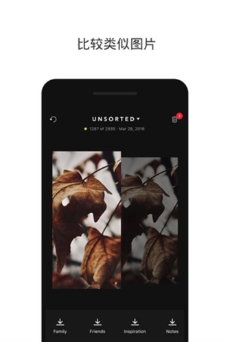 1、软件的黑白界面设计十分简洁,首次打开应用时会呈现简单的使用引导,完成基础设置后就能着手整理所有图片了。