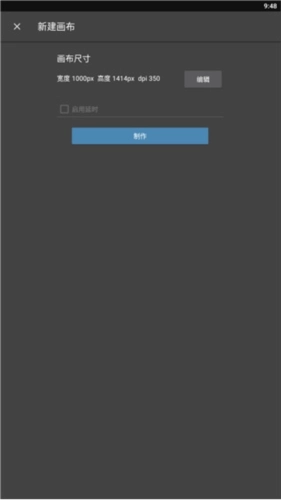 2、编辑能够自行设定画布的尺寸,完成设置后点击制作按钮,就能成功创建画布。