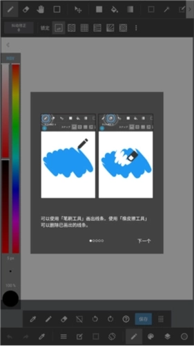 在Android手机的小屏幕上,也能让作画区域最大化,而且只需一键就能关闭所有操作窗口。