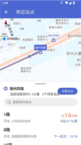 3、附近站点:系统会自动定位您的当前位置,为您展示周边的站点及线路信息。