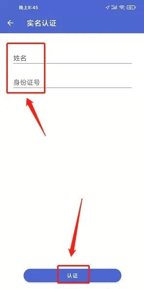 4、进入实名认证页面,填写姓名与身份证号码后,点击【认证】按钮就可以了