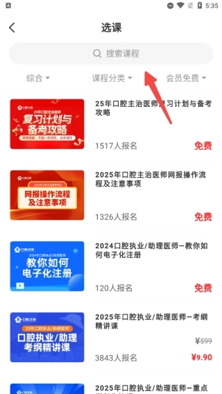 1、进入口腔之家App,选择“选课”板块;