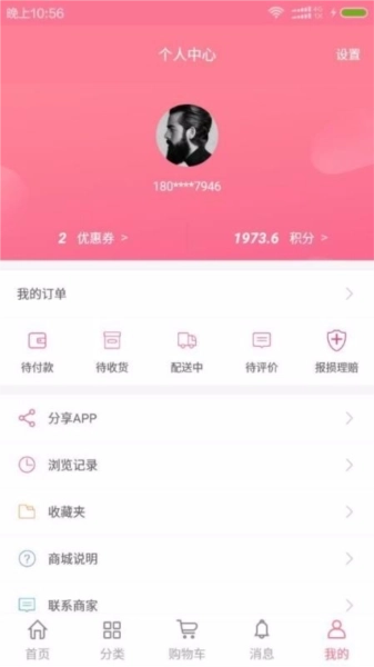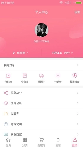5、进入个人中心页面,可查看我的订单、分享软件、查看浏览记录等内容。