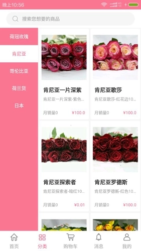 1、鲜花分类:平台汇聚多个国家的鲜花品类供用户挑选,鲜花选择范围更广泛;