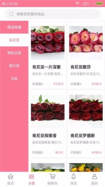 2、点击分类,查看平台分类的各个国家的鲜花种类
