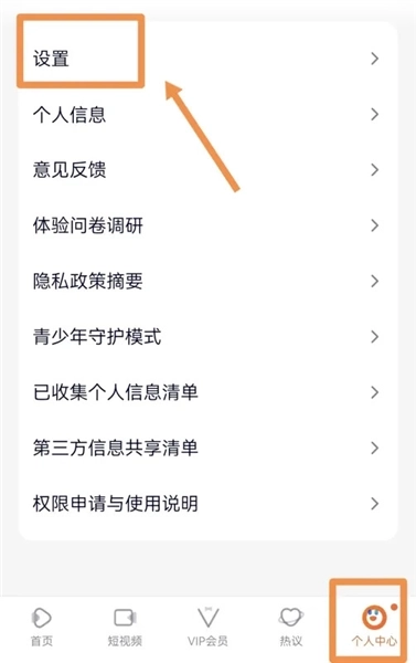 2、接着进入自己的腾讯个人中心,向下滑动页面,找到并点击“设置”选项。