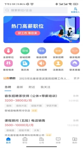 1.雄安本地优质招聘信息:为求职者提供雄安地区本地的高质量招聘信息,覆盖各类行业与职位的工作机会,助力求职者更便捷地找到契合自身技能与背景的工作。
