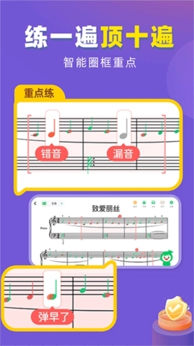 AI曲谱能实时纠正错音,通过趣味互动引导你弹对每个音,不用再盲目练琴却不知对错,进步自然更快!