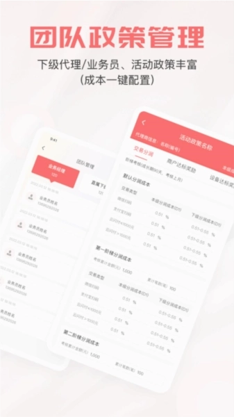 1、平台具备用户在线管理团队政策的功能,助力下级代理商开展业务拓展工作。