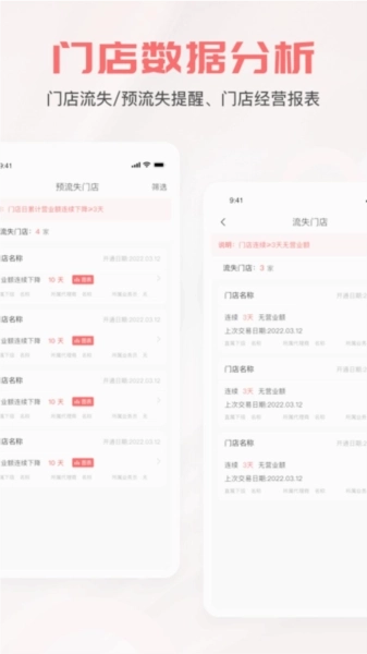 5、用户还能在线统计自家门店的数据,便捷地获取预流失提醒。