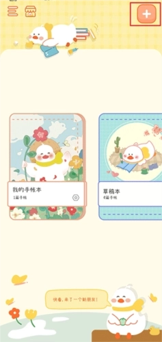 1、打开爱鸭手帐,在首页中点击右上角+号