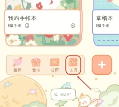 1.点击工具,打开手机应用【爱鸭手帐】,进入【工具】界面。