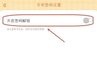 3.点击开启密码解锁功能,进入【手势密码】页面后,再次点击【开启密码解锁】按钮。