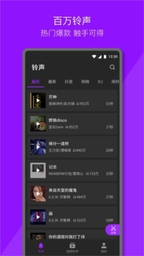 1、来电铃声大全收录了超100万首铃声资源,涵盖流行音乐、影视歌曲、经典老歌等丰富类型;