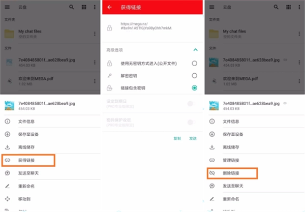 9.点击“获取链接”按钮就能得到分享链接,要是想要取消文件分享,把链接删除就可以了。