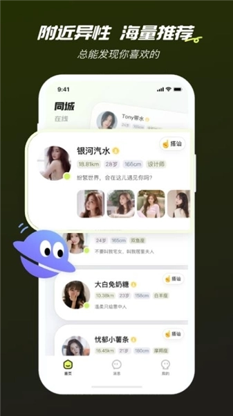 软件为用户推荐了众多颜值出众的优质单身异性,帮助用户寻觅心仪的对象。
