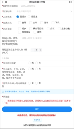 3、最后按照要求填写相关信息,填写完毕后点击提交按钮,就能完成报备流程了。