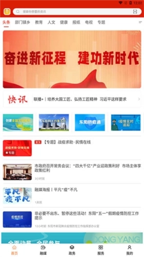 1、进入软件的【首页】后,我们可以看到头条、部门镇乡、教育、人文等各类新闻快讯。