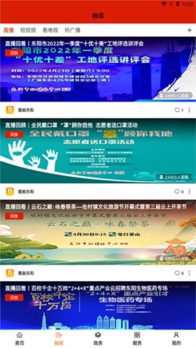 2、切换到【融媒】页面后,我们还能看到大量直播内容,针对错过的直播,该页面也提供了回放功能。