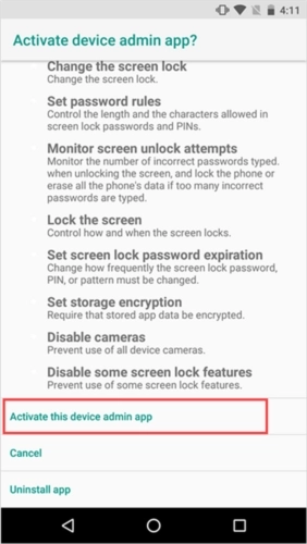 5、激活设备管理员应用。