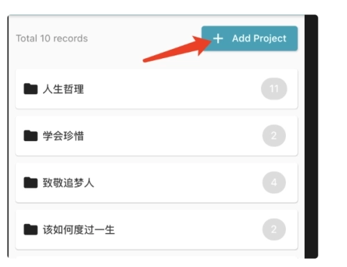 你可以借助创建项目来管理字幕,点击右侧的【添加项目】按钮就能新增一个项目。
