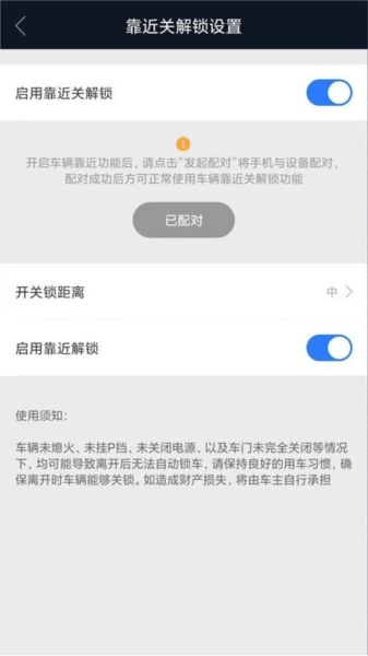 还可以对靠近关解锁的功能参数进行设置,从而让汽车智能钥匙实现靠近自动关解锁的操作。
