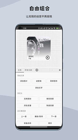 元素小部件支持添加天气、时间、手机电量、音量、每日一句等内容,还能对各类元素进行组合,进而打造出多种多样既新奇又美观的小部件。