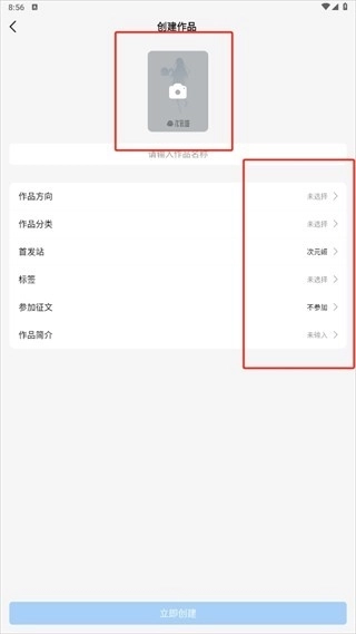 4、然后编辑书名和作品封面,点击右上角【完成】
