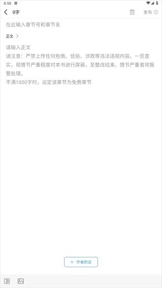 5、就能开始编辑作品内容、进行文字创作了,底部还有各类功能可供使用