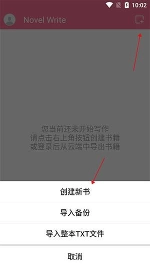 3、回到主页后,点击右上角的图标,即可选择【创建新书】选项。