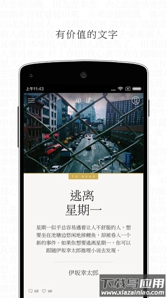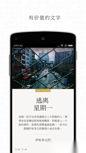 单读应用为你带来全新的阅读体验,助你在都市的忙碌节奏里觅得一方宁静,让你能全身心沉浸于优质文字之中。你可以在此与众多思想者展开交流,从不同视角重新品读海明威、鲁迅、王小波等作家及其作品,进而窥见一个与众不同的世界。