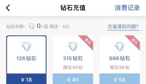 18元是126钻石、45元是315钻石、98元686钻石、198元是1386钻石、388元是2716钻石、698元是4886钻石、998元是6986钻石、1998元是13986钻石、2998元是20986钻石、5898元是41286钻石。