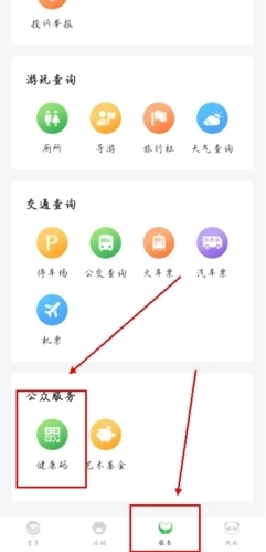 1、其实这一步操作很简单,你只需在【服务】板块里向下滑动到最底部,就能找到【健康码】功能了。