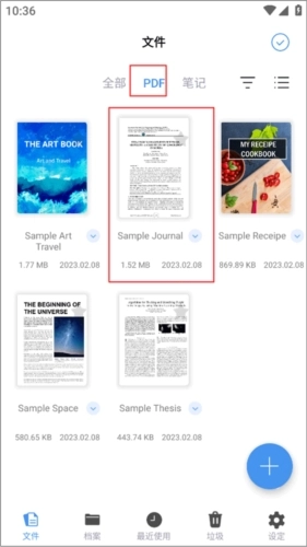 进入【文件->PDF】,选择你想要查阅的文件并点击进入内容界面;