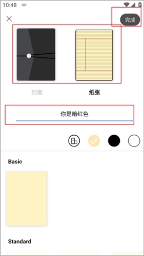 接下来要做的是设置笔记封面的格式、给笔记命名,最后点击完成按钮。