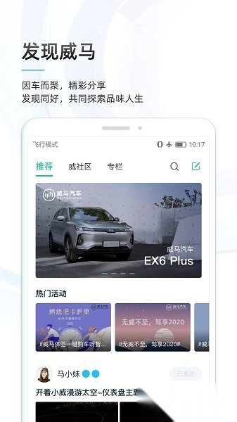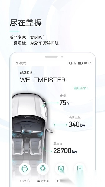 这款应用是威马汽车为互联网时代用户量身打造的全方位出行体验解决方案。用户只需通过一个应用和一个威马账户,就能畅享全流程的便捷出行服务,开启不间断的智能车生活体验。